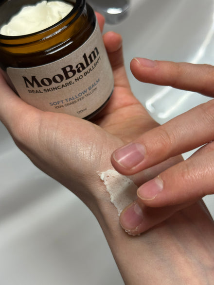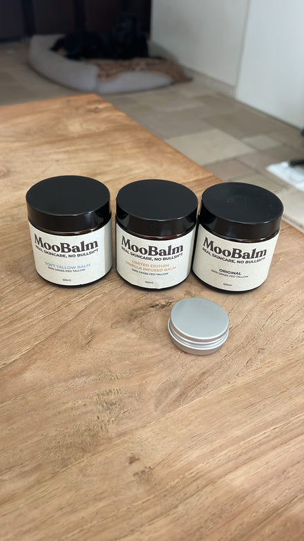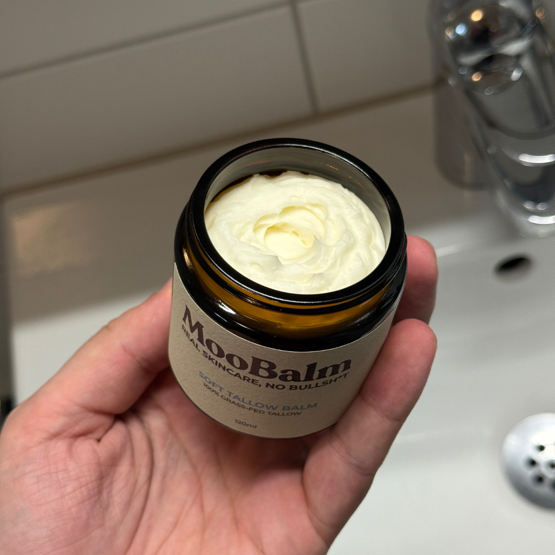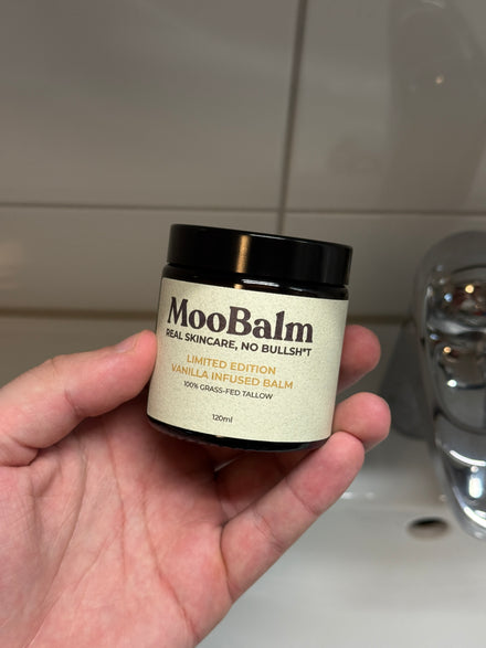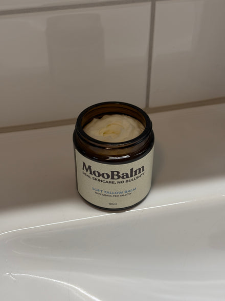 MooBalm is gemaakt van rundertalg en jojoba-olie — ingrediënten die je huid écht herkent.